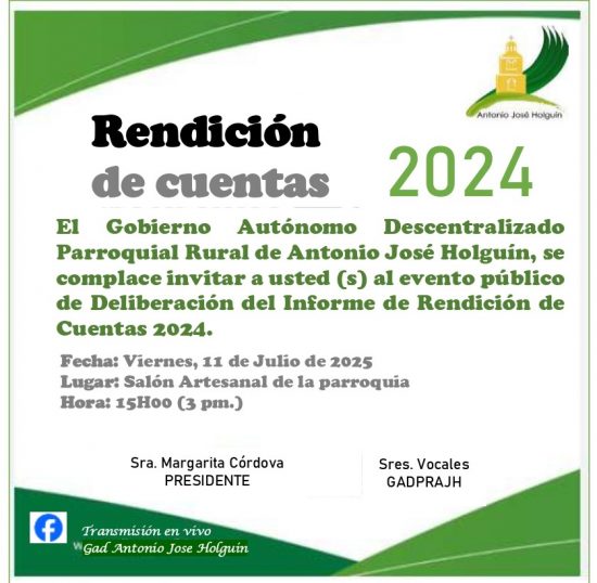 PROCESO DE RENDICIÓN DE CUENTAS GADPR DE ANTONIO JOSÉ HOLGUÍN PERÍODO 2024